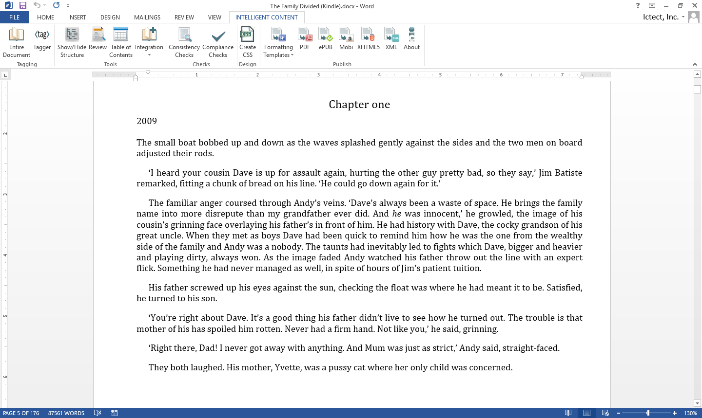 Ictect offers patented software for quickly and efficiently publishing print and electronic books from Microsoft Word. Publishers and authors will save time and money by using Intelligent Content Tools from Ictect.